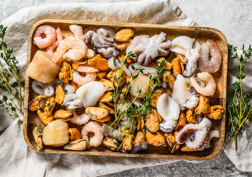 Koostisosad: kalmaari ribad, kalmaari rõngad, kalmaari kombitsad, kaheksajala lõigud, Tsiili rannakarbiliha, kooritud krevetid, vesi, sool, stabilisaatorid: E451, E452, säilitusaine E223.